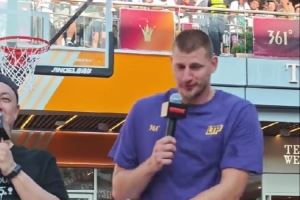 段冉观看约基奇中国行!后者与粉丝互动投篮 表示一切太棒了