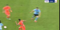 第17分钟,廖锦涛与马德鲁加身体接触后倒地,马德鲁加染黄。